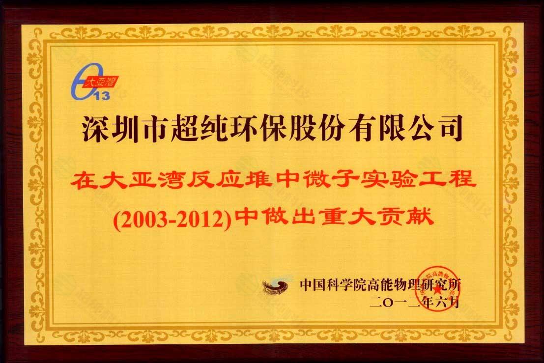 大亞灣中微子實(shí)驗(yàn)貢獻(xiàn)獎(jiǎng)