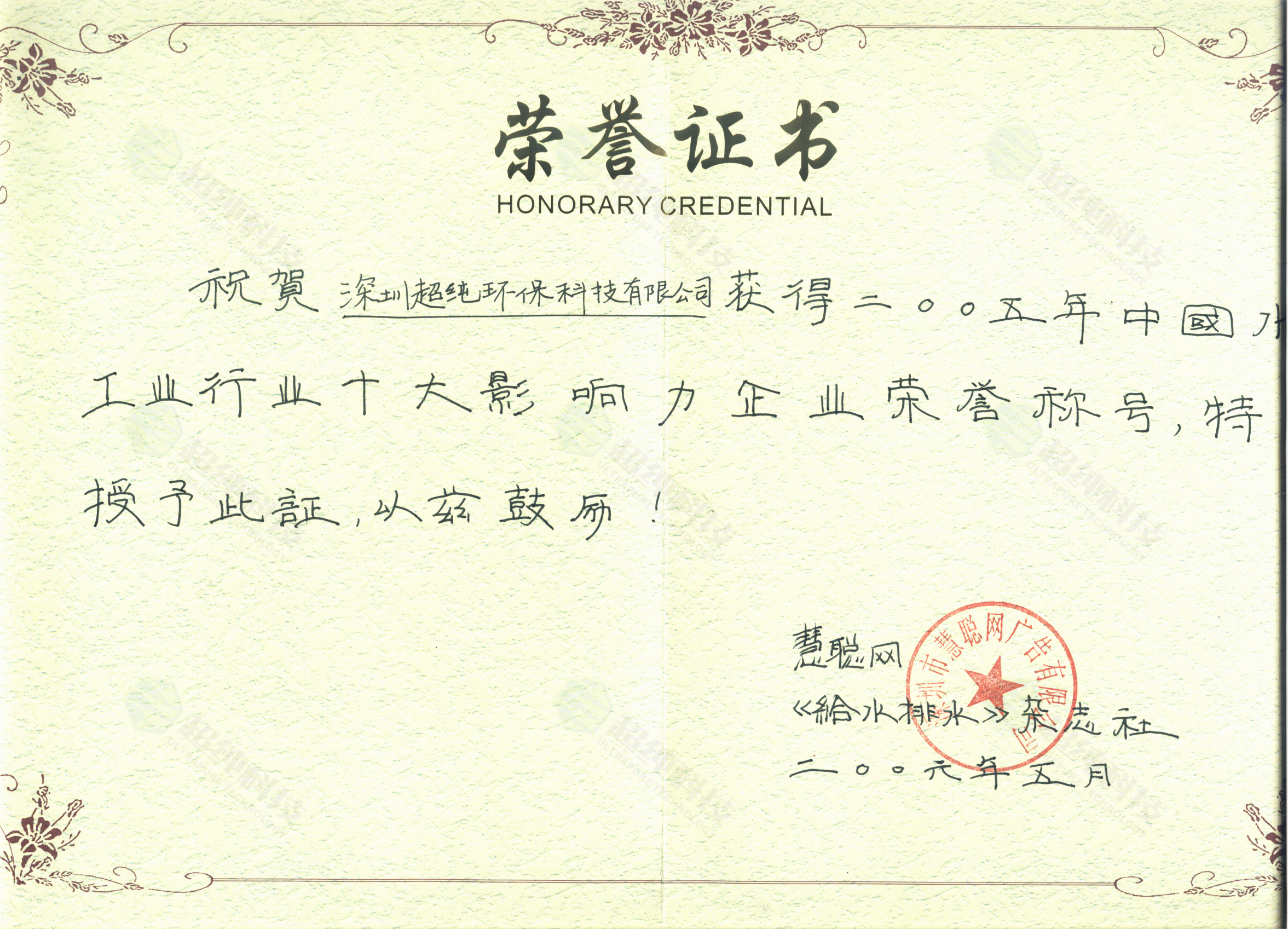 工業(yè)行業(yè)十大影響力企業(yè)榮譽(yù)證書