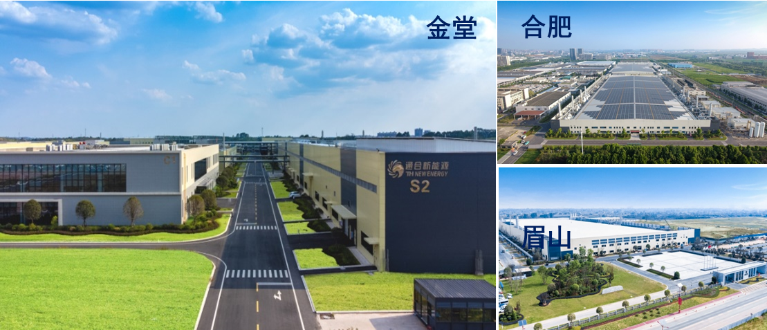 通威太陽能光伏產(chǎn)業(yè)基地項目總投資約200億元,現(xiàn)擁有合肥、雙流、眉山、金堂、彭山、鹽城、南通七大基地及通合項目,電池現(xiàn)有產(chǎn)能超95GW,2024-2026年,將形成130-150GW的電池產(chǎn)能,其中大尺寸產(chǎn)能占比將超過90%,高效組件現(xiàn)有產(chǎn)能75GW。
