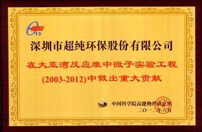 在2008年中國(guó)科學(xué)院高能物理研究所的反符合中微子探測(cè)器項(xiàng)目超純水系統(tǒng)公開(kāi)招標(biāo)中,公司憑借技術(shù)實(shí)力和服務(wù)優(yōu)勢(shì)成功中標(biāo),經(jīng)過(guò)三年多的技術(shù)攻關(guān),所中標(biāo)超純水系統(tǒng)項(xiàng)目取得圓滿成功,并被中國(guó)科學(xué)院高能物理研究所授予“重大貢獻(xiàn)獎(jiǎng)”。