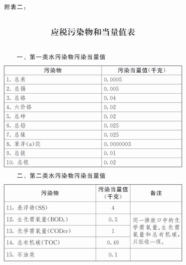 (二)應稅水污染物按照污染物排放量折合的污染當量數確定;